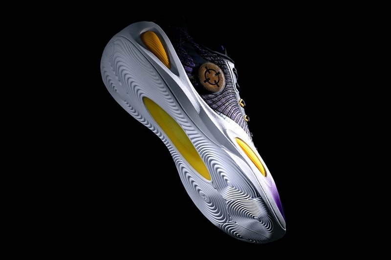「Showtime」以 Lakers 的經典配色呈現,向球隊著名的「Showtime」傳統致敬,該鞋採用織繭材質製成,配上 Bubble Lacing 系統、Showtime Foam Tech 中底、抗扭轉 TPU 板以及防滑橡膠外底,增加穿著時的穩定性。